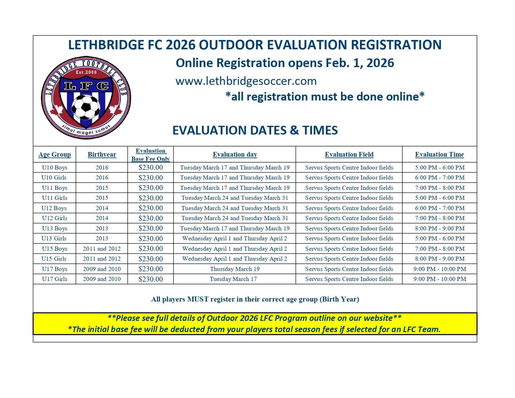 2026 LFC Outdoor Evaluation Information